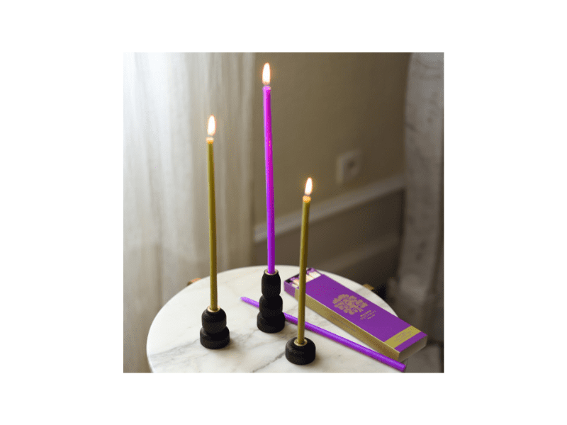 Coffret cadeau – 10 chandelles « Carbone » – Alumettes – 2 Bougeoirs
