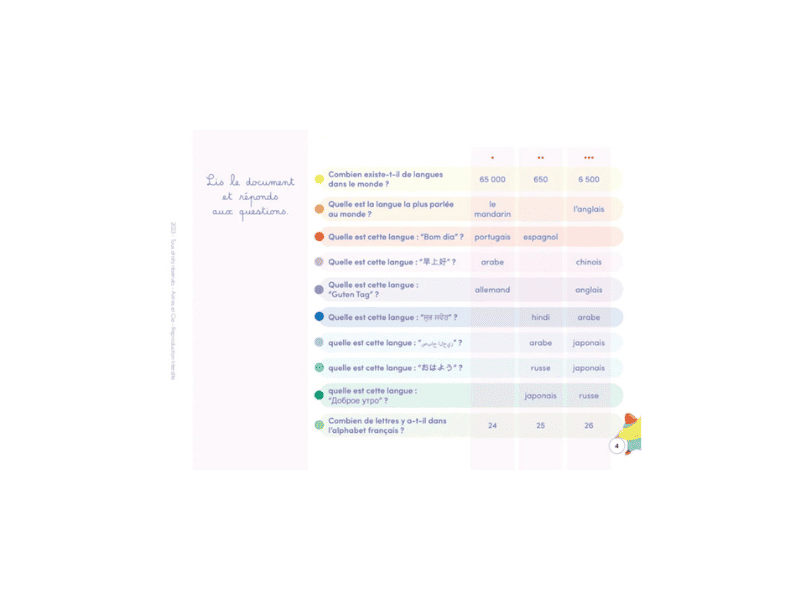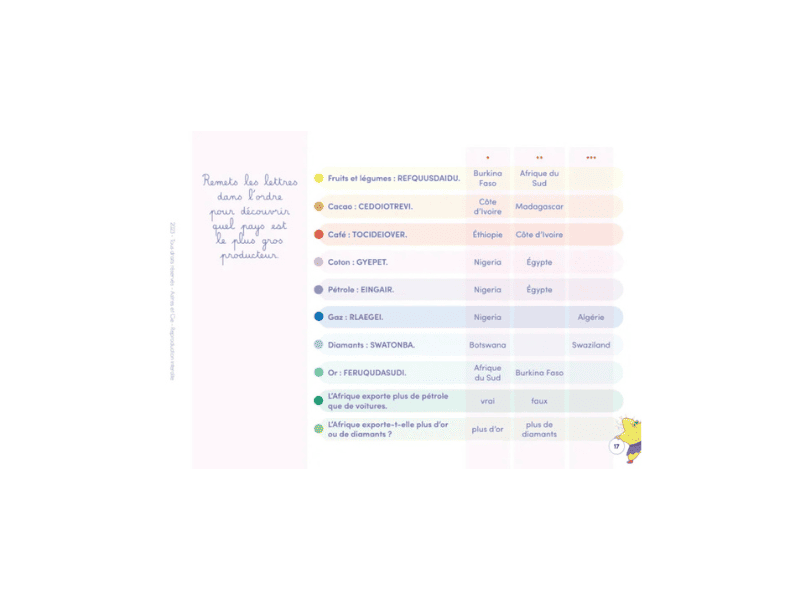 Ce carnet permet aux enfants de 8 à 11 ans de découvrir les différents continents du monde au travers de cartes, de documents illustrés ou rédigés. Grâce à l’étude précise de ces documents et à la recherche d’informations, les enfants vont pouvoir répondre aux questions des 50 fiches programmables sur l’Etoilium.